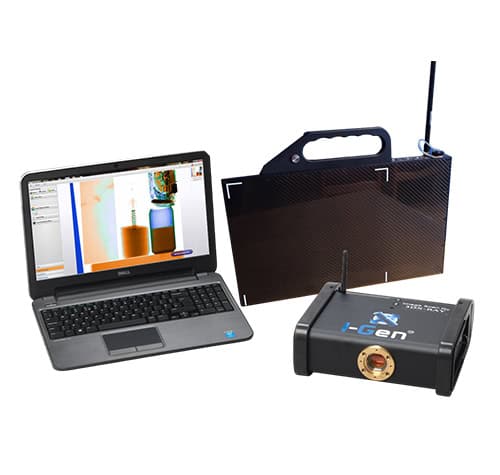 Les kits ThreatScan®-LS1 et ThreatScan®-LS3 sont composés d’un générateur I-Gen® à faisceau continu et d’un ordinateur portable ou tablette connecté en WiFi. La taille du panneau détecteur diffère en fonction du kit. L’ensemble est complété par une batterie de rechange et un chargeur.
